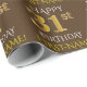 Este diseño de papel envolvente presenta un mensaje como "FELIZ 31º CUMPLEAÑOS", en el que el "31º" tiene una apariencia de imitación de oro. También tiene un nombre que se puede personalizar y un fondo de color marrón. Tal vez podría ser usado cuando se envuelven regalos para el primer cumpleaños de alguien. [~Z0000133]