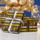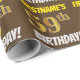 Este diseño de papel envolvente incluye un mensaje como "¡59º CUMPLEAÑOS!", con el "59º" con un aspecto de color falso/imitación dorado, y con el nombre y el "CUMPLEAÑOS" en un tipo de letra divertido y audaz. El nombre se puede personalizar y el fondo es marrón de colores. El papel envuelto como este podría ser usado cuando se le dan regalos de cumpleaños a alguien en celebración de sus cincuenta y nueve años. [~Z0000211]