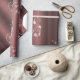 Un patrón festivo de grandes torbellinos blancos, copos de nieve y estrellas esparcidas sobre un fondo marrón metálico, para añadir un toque elegante a los regalos de tus Navidades que envuelven estas vacaciones.