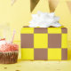 Resumen de arte digital de cuadrados marrones y amarillos en una formación a cuadros.