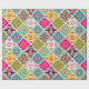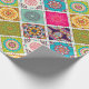 Un colorido patrón de impresión étnica de mandalas de la cultura india o marroquí / del Medio Oriente. Este diseño vibrante tiene un color azul rosa, amarillo y toda una gama de diseños de mandala coloridos e intrincados.