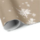 Papel de envoltura de color kraft con copos de nieve grandes y pequeños.