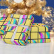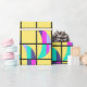 Este papel de envoltura tiene un diseño moderno de mediados de siglo de lunas de media luna divididas horizontalmente en tres colores, rosa, azul, lavanda o marinero, dividido a la mitad y dispersado en una rejilla con fondo amarillo. Si te gusta el diseño pero quieres colores diferentes, envíame un mensaje.