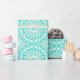 Medallón azul turquesa oceánico (El hechizo de Neptuno) Un elegante y decorativo diseño bohemio florido y abstracto de mandala... bello patrón de flores caleidoscópicas en una paleta de colores náuticos inspirados en el océano de acuarina acuática con acentos de beige de playa de arena sobre un fondo blanco y fresco.