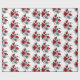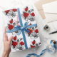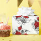 Contorno, luna de media luna mecánica con engranajes, decorada con rosas rojas con tallo negro y hojas sobre fondo blanco. Steampunk