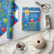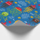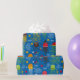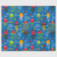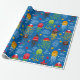 Tonto, colorido, diversión, medusas y pulpo caprichoso con los sombreros, gorras de derby, pelo rizado, ojos, sonrisas, y algunos zapatos que llevan en un fondo azul con las estrellas del rojo y del oro.
