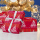 Consigue que los Navidades se envuelvan con este único árbol blanco de copos de nieve y que los Navidades rayados rojos y verdes envuelvan papel. Personalizar con su propio saludo y nombre de la compañía o familia. Actualmente se lee Felices Fiestas de los Taylors. Diseñado exclusivamente por Sarah Trett.