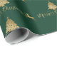 Un Navidad brillante Envuelto papel con un hermoso texto de tipografía "Feliz Navidad" en oro falso con un árbol de Navidad y un reno en un fondo verde. Hermosos y elegantes diseños para hacer un regalo alegre envolviendo esta temporada navideña.