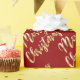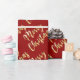 Feliz Navidad con un elegante y moderno guión con una mirada metálica de oro sobre un elegante fondo rojo.