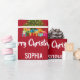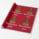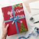 Envoltura de regalo para Navidades modernos para niños, con un árbol de Navidad decorado con azulejos, luces y dulces; el saludo "Feliz Navidad" en tipografía elegante; y un nombre personalizado. En un fondo rojo de Navidad.