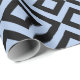 Este audaz patrón geométrico azul claro y negro es un diseño ornamental original. Los diamantes de color azul pálido con bordes negros están rodeados de pequeños crujidos azules que los rodean. Los zigzags negros separan los sinuosos caminos azul claro y los diamantes de desvío.