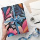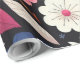 Un caleidoscopio de flores en vivos tonos de joyas (coral, cobalto, canario y ciruela) irradia a través de un fondo negro dramático en un arreglo floral espejado. Audaz y romántico, esta huella simétrica del jardín le da elegancia a cualquier decoración o diseño de regalo.
