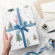 Featuring hand-painted watercolor evergreens, tiny stars, and graceful reindeer on a soft neutral background, this design adds simple elegance to your festive wrapping.
