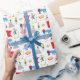 Este documento de envoltura incluye todos sus íconos favoritos de Minnesota; vikings, Paul Bunyan, platos calientes, hockey, estrellas que representan el estado del Estrella Norte, el faro de rock de Split, Spoonbridge y Cherry, la Feria Estatal de Minnesota y la Torre del Agua del Oro del Maíz.