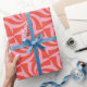 Este divertido y festivo envolvimiento de vacaciones presenta un fondo de color rojo ondulado y rosa retro. Este papel de embalaje se coordina con nuestras tarjetas de fotos de vacaciones Mod Wavy Groovy.