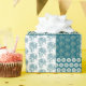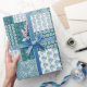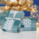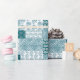 Un rollo de papel de envolvimiento de regalo de moda, con un patrón de imitación estilo étnico Faux Patchwork en Verde azulado y blanco. Este patrón, que forma parte de la colección "Boho Bazaar" de Posh & Painterly, se puede personalizar fácilmente cambiando la dirección o la escala del mosaico de patrones para un aspecto completamente diferente.