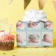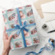 Elegante papel de envoltura de fotos para bebés con tu propio patrón de fotografía personalizado para recién nacidos. Hermoso ajuste personalizado de regalo de plantilla de 4 fotos para un cumpleaños con líneas verde azuladas de moda que separan las fotos de alguien como niño.