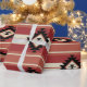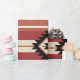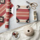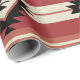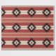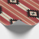 Modelo bohemio étnico azteca con formas geométricas en colores rojos, anaranjados, grises y negros en fondo rayado