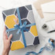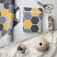 Un modelo elegante del hexágono en tonos azules, grises y amarillos.