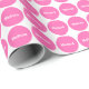 Un papel de embalaje diseñó con un modelo de punto rosado en un fondo y un nombre blancos. Modifique el papel de embalaje con su nombre especial o el texto para requisitos particulares entre otras opciones.