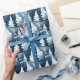 Este moderno artículo de deformación de regalo de vacaciones presenta un lindo patrón de árbol de Navidad abstracto azul y blanco. Tiene un aspecto contemporáneo pero simple, caprichoso, perfecto para envolver regalos festivos de Navidad o regalos de peluche.
