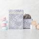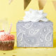 ¡Envuelva su regalo en un adorno de la vuelta! Este papel ofrece un modelo inconsútil hermoso de Paisley en sombras elegantes del gris. ¡Cree una presentación moderna con un diseño del vintage!