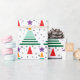 Papel de envoltorio para regalos del navidad con un modelo moderno de los árboles de navidad. El modelo de la MOD con el ilustracion verde de los árboles de navidad, púrpura protagoniza y la nieve gris añade un tacto festivo a sus regalos del navidad.