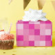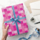 Este papel de embalaje ofrece cuadrados en diversas sombras del rosa en un modelo pixelated.