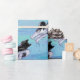 Las cabezas y las colas de perro del husky siberiano modelan las camisetas, electrónica, regalos, y los accesorios ofrecen nuestro arte original del ilustrador de nuestros niños talentosos de un perro esquimal blanco y negro del frente y de la parte posterior en un modelo inconsútil de la diversión en un fondo azul texturizado.