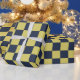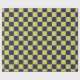 A bold, modern checkered pattern in dark blue and warm yellow, blending classic retro vibes with geometric style.