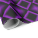 Modern geometric pattern wrapping paper. The design features a srtiking black and purple diamond pattern with glowing purple outlines, creating a 3D or optical illusion effect. This elegant gift wrap suitable for birthdays, formal events, or any other special occasions.