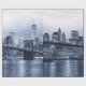 Wrap your gifts in sophisticated city style with this elegant New York City skyline wrapping paper. Featuring a dramatic black-and-white view of the Brooklyn Bridge and Manhattan skyline reflected across the water, this modern urban design creates a bold and stylish presentation for any occasion.