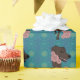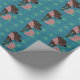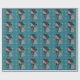Estilo retro personalizado ilustracion original de un lindo perro feliz usando una guirnalda de rosas con un fondo con motivos geométricos. Papel de embalaje perfecto para los amantes de los perros y animales en cualquier ocasión.