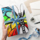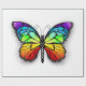 Mariposa monarca realista en todos los colores del arco iris sobre un fondo blanco. Mariposa arcoiris.