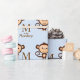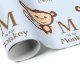 Envoltura de regalo para bebé de mono "M es para el mono", de color marrón y azul bebé. Este envoltorio de regalo de la ducha de bebé de mono azul y marrón dulce se puede personalizar con tu texto en el estilo de letra y color de tu elección.