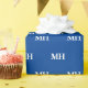 Elegante papel de envoltura en monograma azul y blanco. Perfecto para envolver regalos. Graduación, boda, cumpleaños. Personalizar con sus iniciales.
