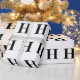 Elegante papel de envoltura en monograma en blanco y negro. Perfecto para envolver regalos. Graduación, boda, cumpleaños.