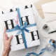 Papel De Regalo Monograma blanco negro simple elegante inicial