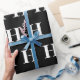 Elegante papel de envoltura en monograma en blanco y negro. Perfecto para envolver regalos. Graduación, boda, cumpleaños.
