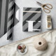 Papel De Regalo Monograma de franjas blancas grisáceas simples y e