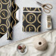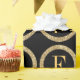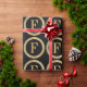 Monograma F dorado sobre fondo negro con marco de círculo dorado.