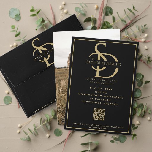 Simple Wedding Monogram - Black and GoldDiseñado por Heather M