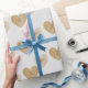 El diseño presenta dos corazones en variados diseños dorados con monogramas personalizados en los dos corazones. Es un envoltorio elegante y personalizado para la novia y el novio para celebrar su día especial.
