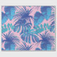 Papel De Regalo Monstruo tropical azul y hojas de palma rosadas