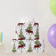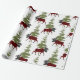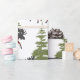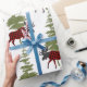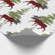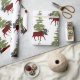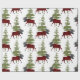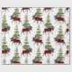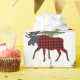 Hojas de toro vestidas con tartán rojo y negro caminando a través de pinos verdes. Antecedentes blancos, personalizar como quieras.