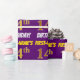 Este diseño de papel envolvente incluye un mensaje como "¡14º CUMPLEAÑOS DE NOMBRE PRIMERO!", con el "14º" con un aspecto de color falso/imitación de color dorado, y con el nombre y "CUMPLEAÑOS" en un tipo de letra divertido y audaz. El nombre se puede personalizar y el fondo es morado. El papel envuelto como este podría ser usado cuando se le dan regalos de cumpleaños a alguien para celebrar su decimocuarto cumpleaños. [~Z0000206]