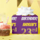 Este diseño de papel envolvente incluye un mensaje como "¡EL CUMPLEAÑOS 23 DE ANDREW!", con el "23" con un aspecto de color falso/imitación de color dorado, y con el nombre y el "CUMPLEAÑOS" en un tipo de letra divertido y audaz. El nombre se puede personalizar y el fondo es morado. El envolvimiento de papel como este podría ser usado cuando se le dan regalos de cumpleaños a alguien en celebración de su vigésimo tercer cumpleaños. [~Z0000206]