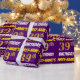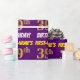 Este diseño de papel envolvente incluye un mensaje como "¡EL CUMPLEAÑOS 39 DE PRIMER NOMBRE!", en el que el "39" tiene un aspecto de color falso/imitación de color dorado, y con el nombre y el "CUMPLEAÑOS" en un tipo de letra divertido y audaz. El nombre se puede personalizar y el fondo es morado. El envolvimiento de papel como este podría ser usado cuando se le dan regalos de cumpleaños a alguien en celebración de su 39º cumpleaños. [~Z0000206]