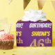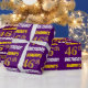 Este diseño de papel envolvente incluye un mensaje como "¡46º CUMPLEAÑOS DE SHAUNA!", con el "46º" con un aspecto de color falso/imitación dorado, y con el nombre y el "CUMPLEAÑOS" en un divertido y audaz tipo de letra. El nombre es personalizable y el fondo es morado. El envolvimiento de papel como este podría ser usado cuando se le dan regalos de cumpleaños a alguien en celebración de sus cuarenta y seis años. [~Z0000206]