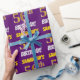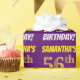 Este diseño de papel envolvente incluye un mensaje como "¡56º CUMPLEAÑOS DE SAMANTHA!", en el que el "56º" tiene un aspecto de color falso/imitación dorado, y con el nombre y el "CUMPLEAÑOS" en un tipo de letra divertido y audaz. El nombre se puede personalizar y el fondo es morado. El envolvimiento de papel como este podría ser usado cuando se le dan regalos de cumpleaños a alguien en celebración de su cincuenta sexto cumpleaños. [~Z0000206]